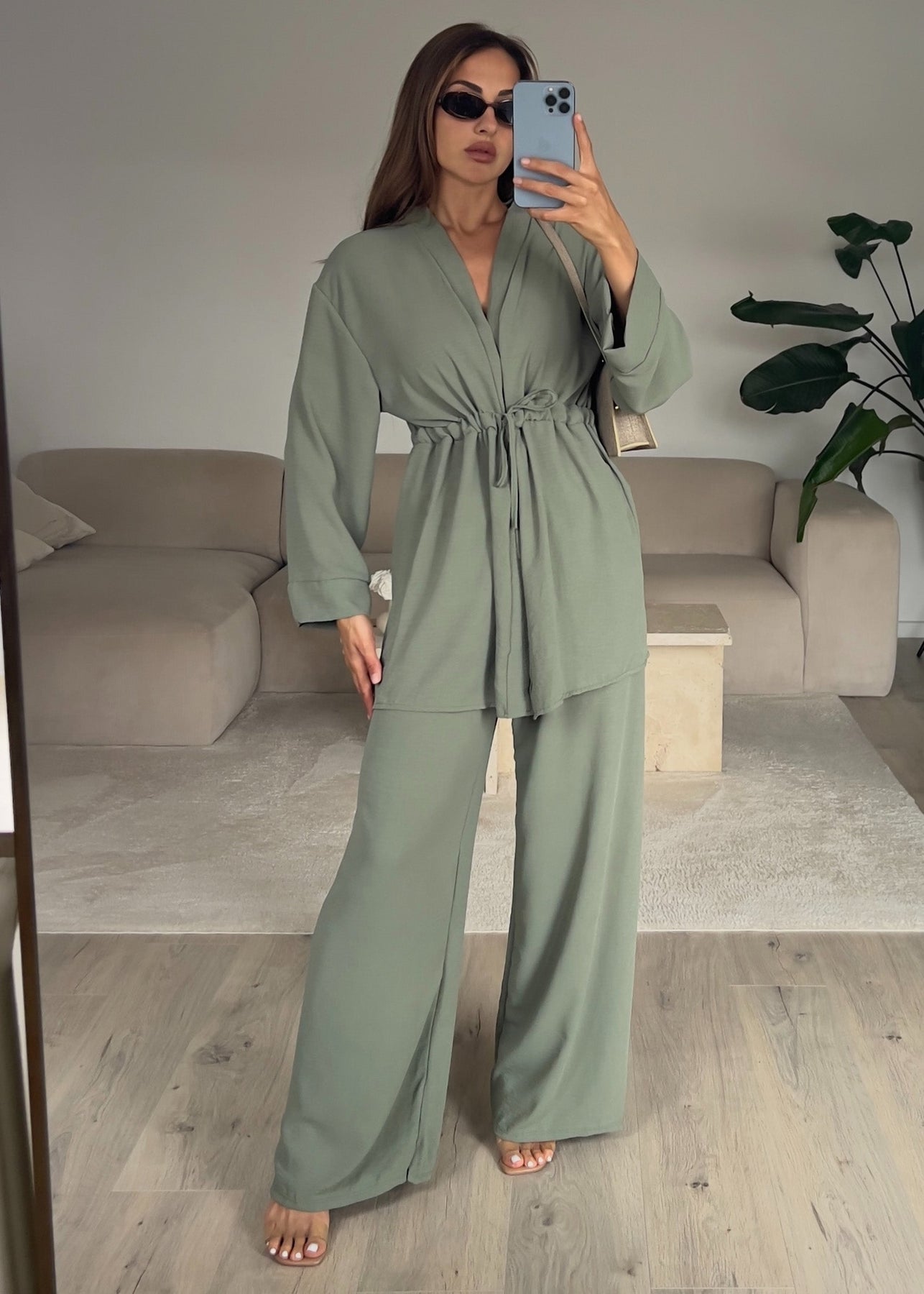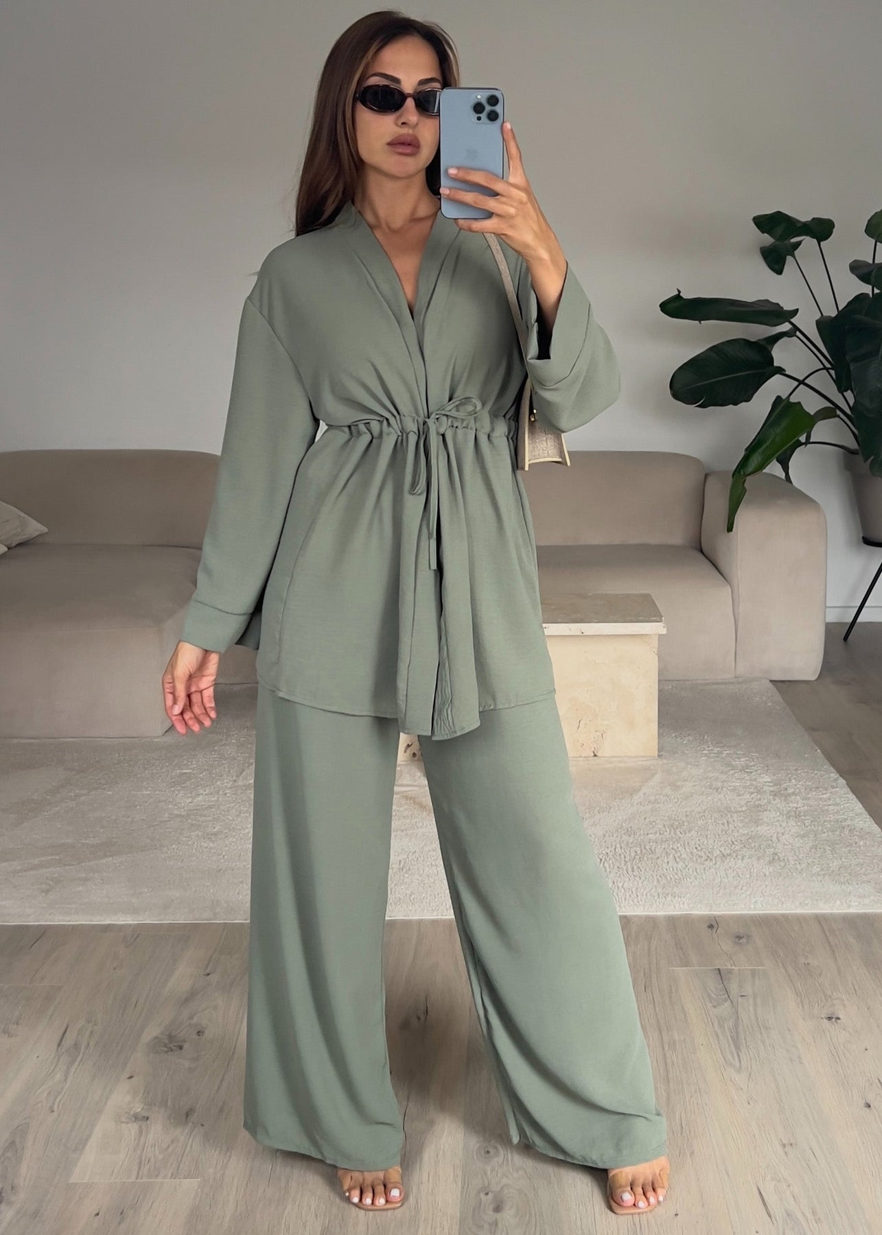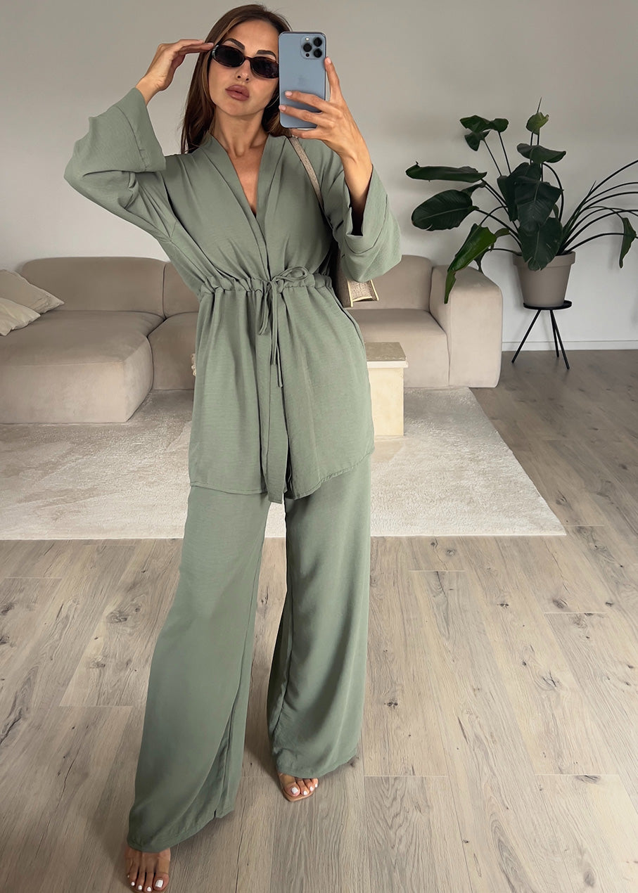 Set aus Oberteil und Hose Khaki