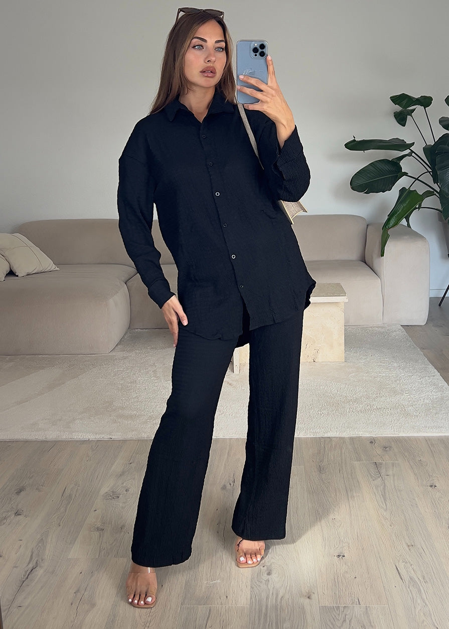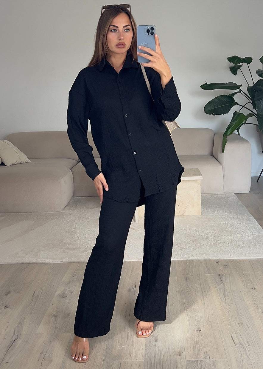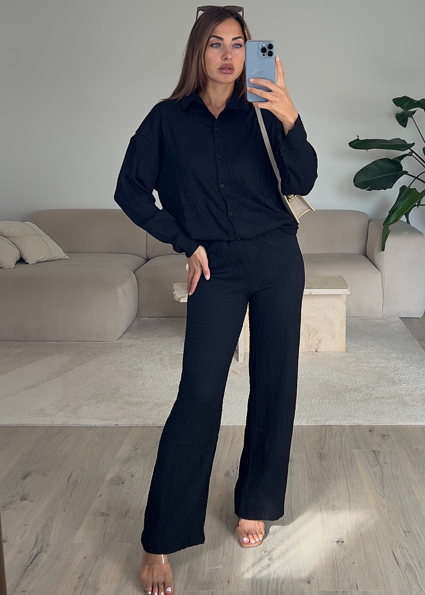 Zweiteiler aus strukturiertem Stoff Schwarz