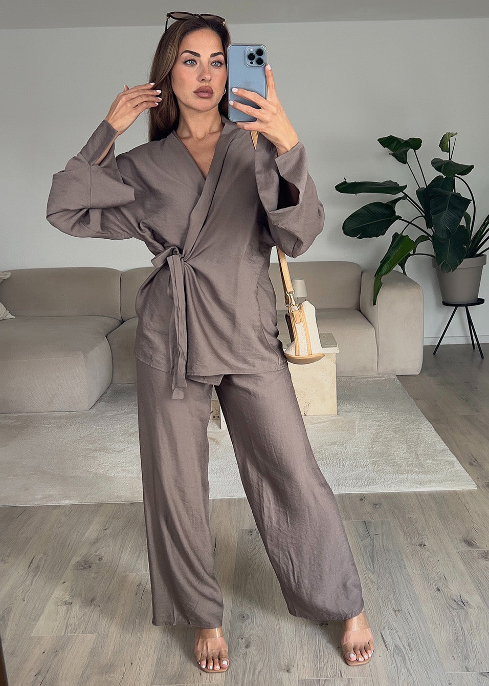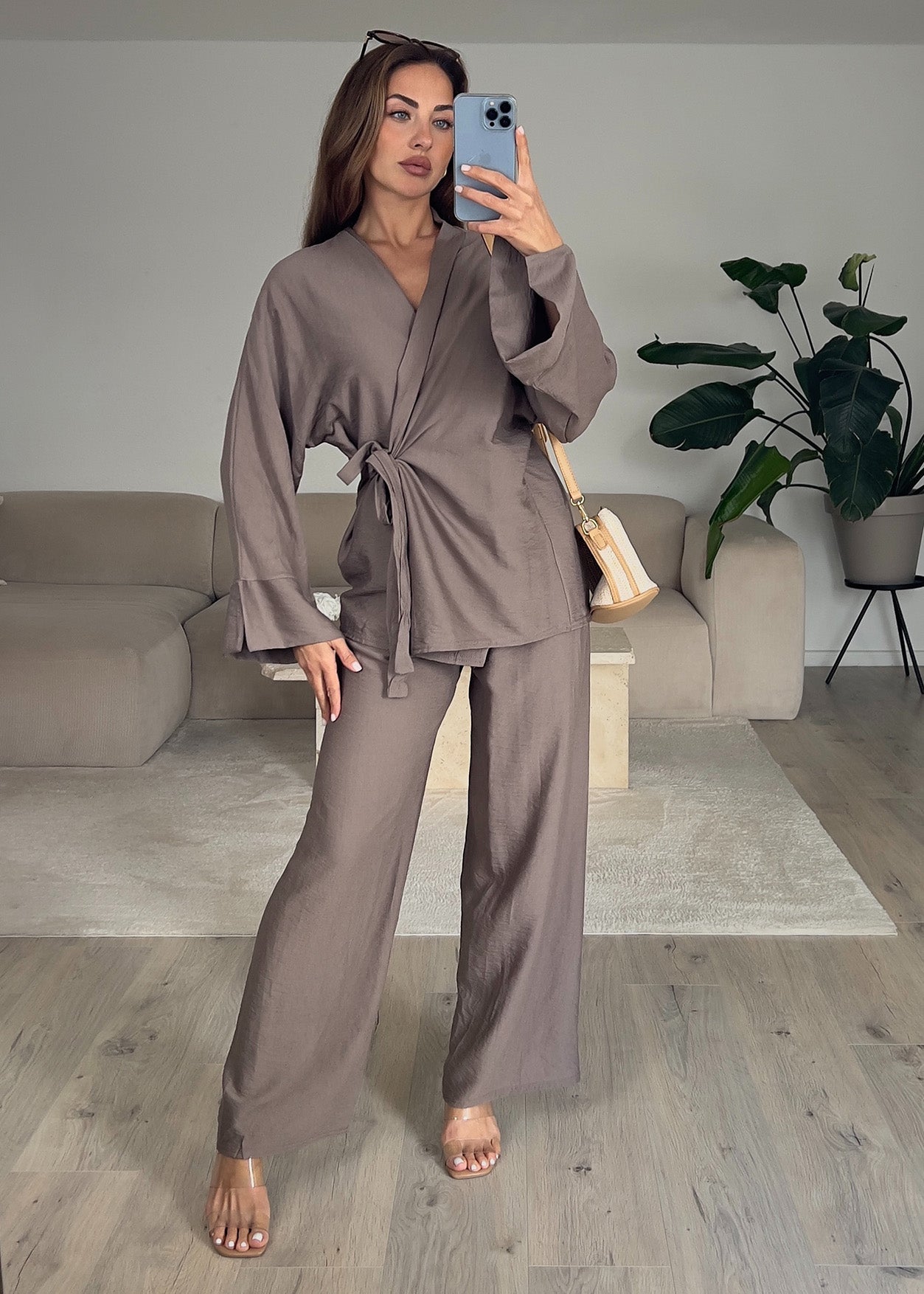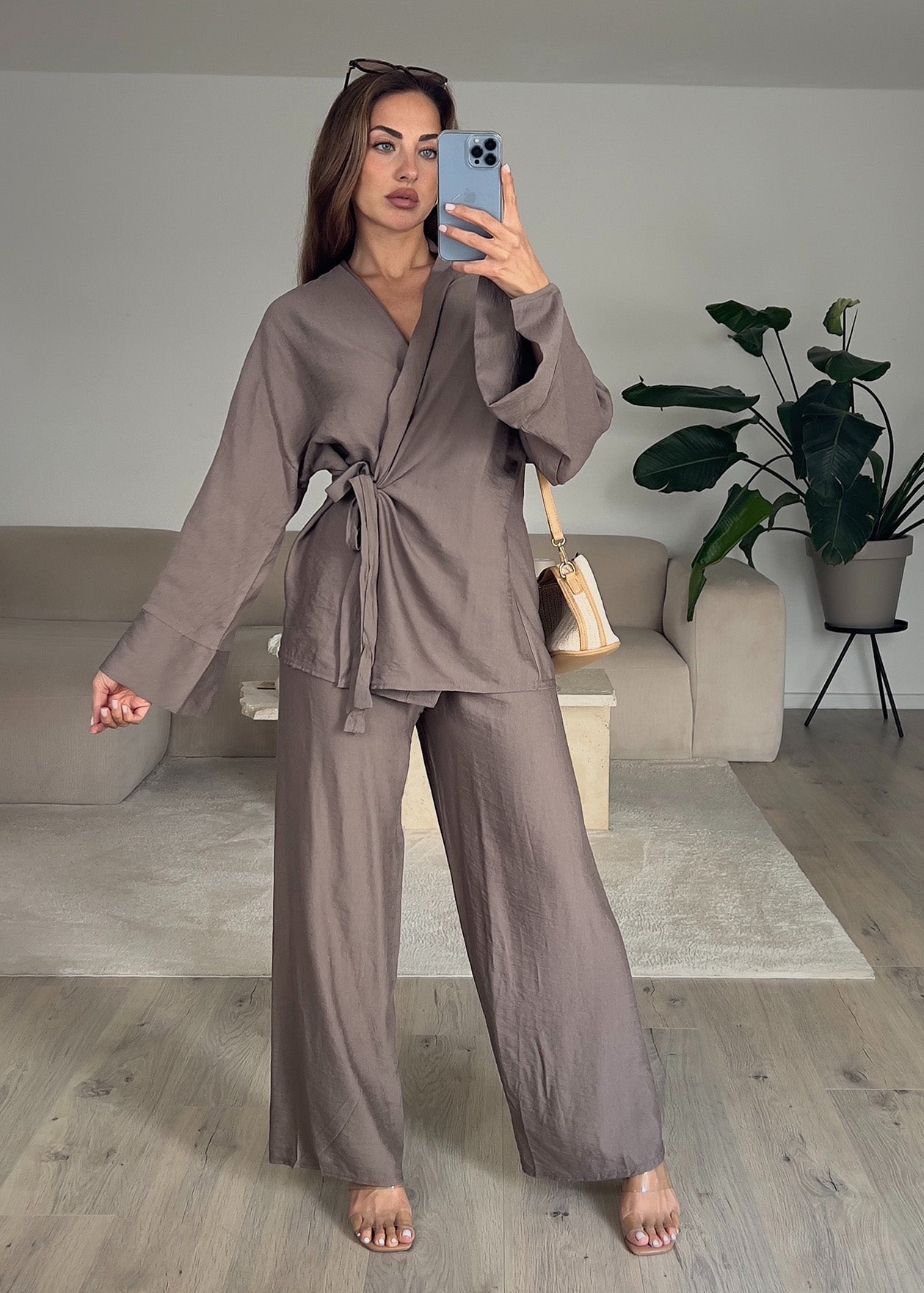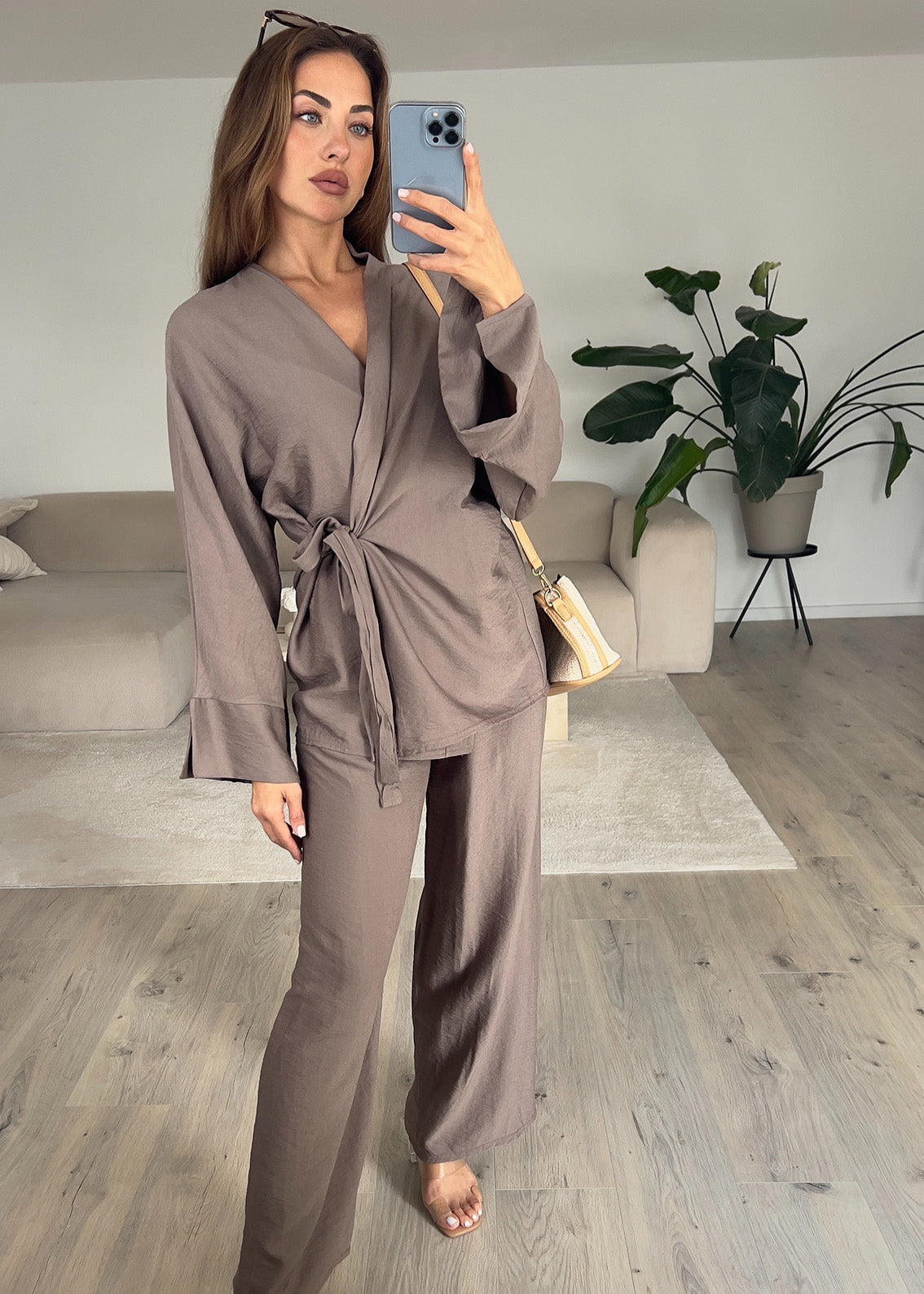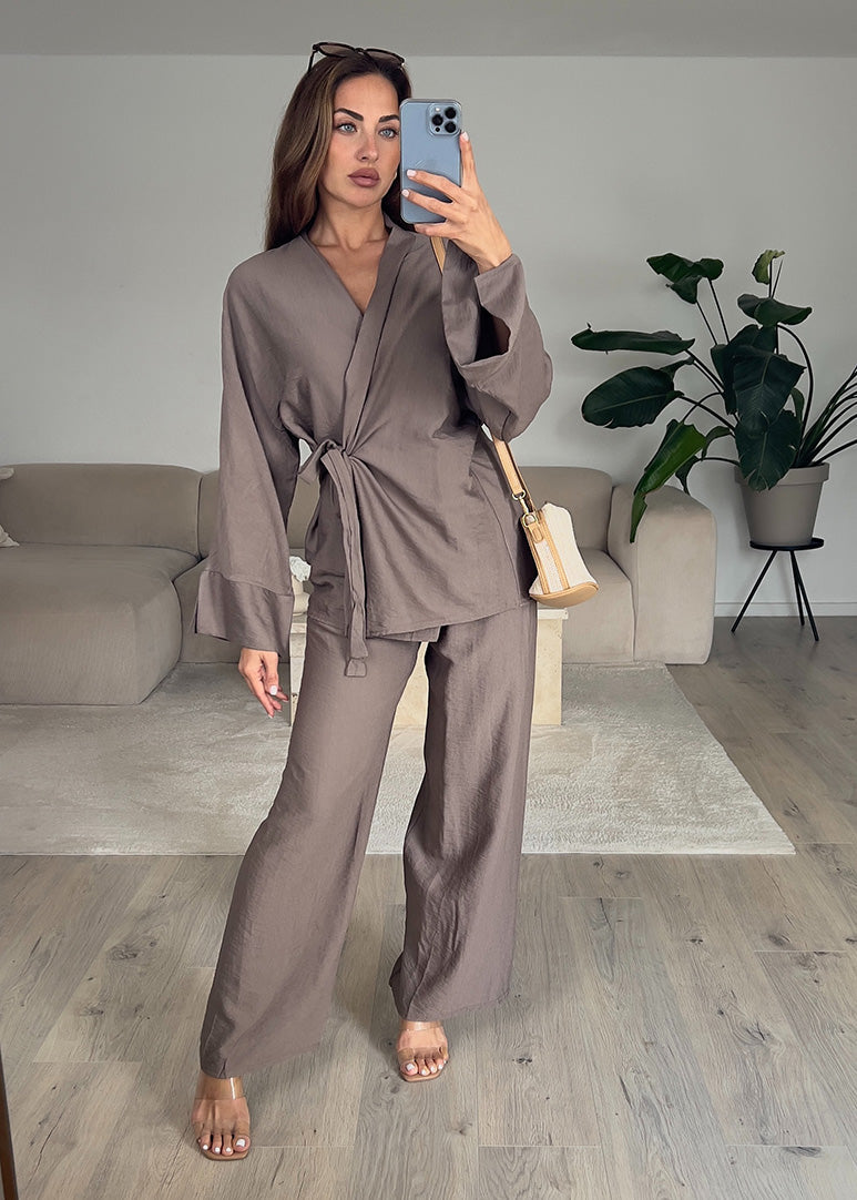 Basic Zweiteiler in Wickeloptik Taupe