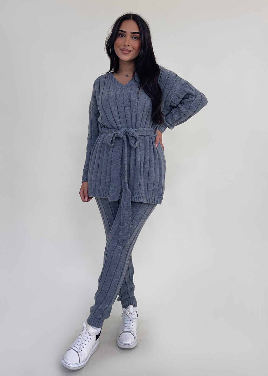 Strick-Set mit Gürtel
