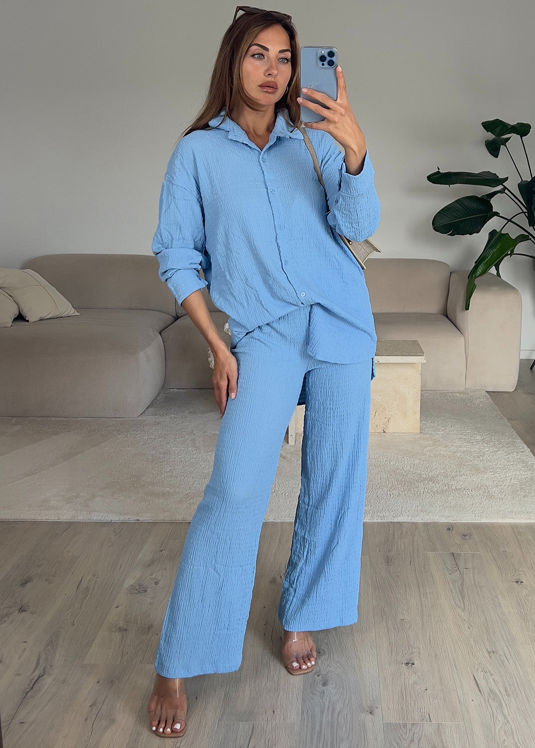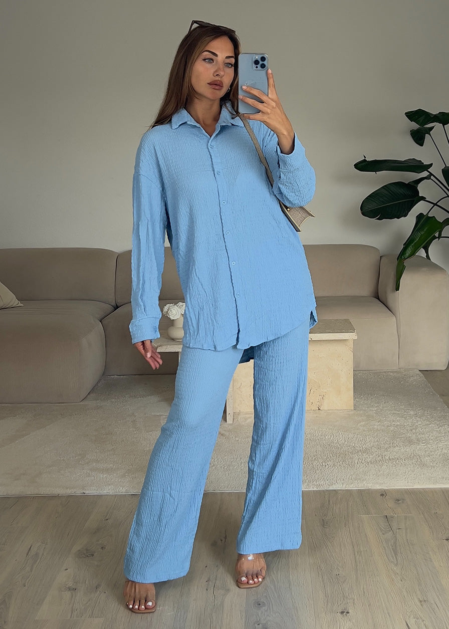 Zweiteiler aus strukturiertem Stoff Hellblau