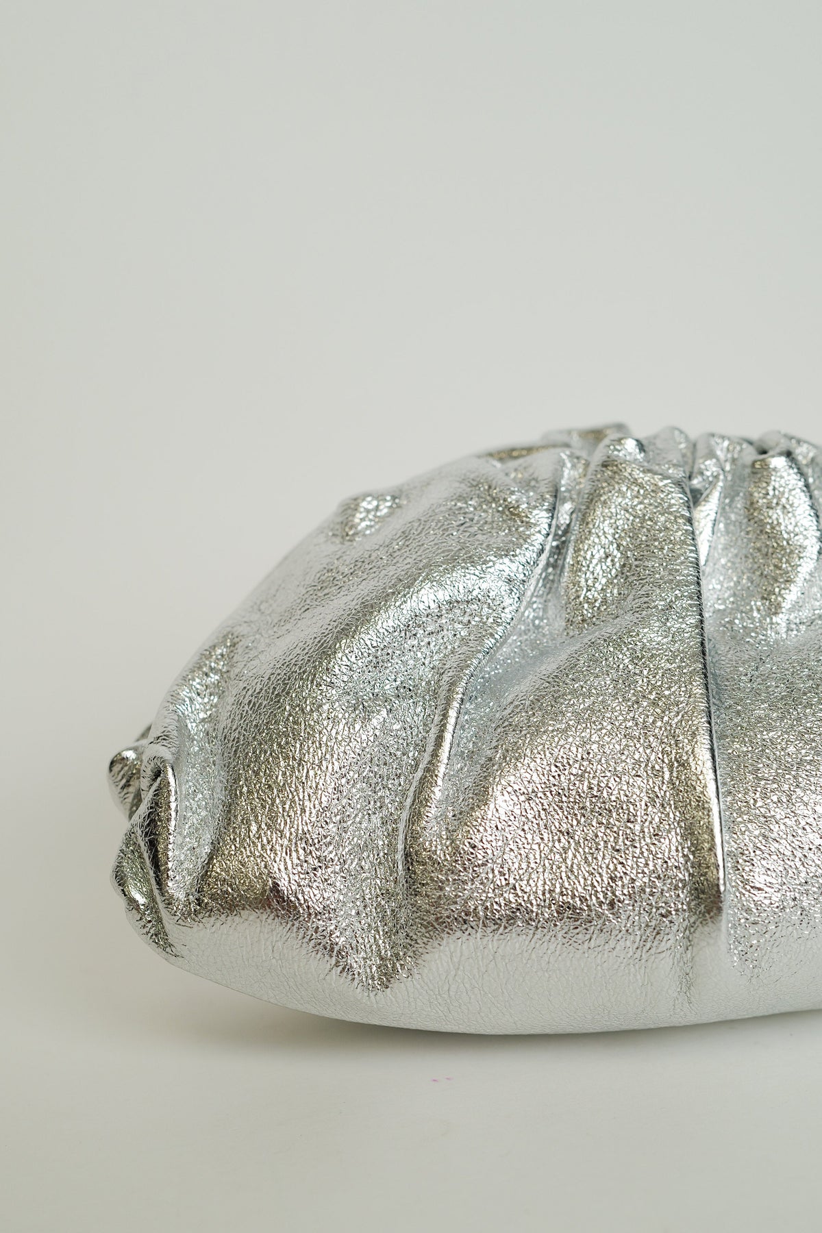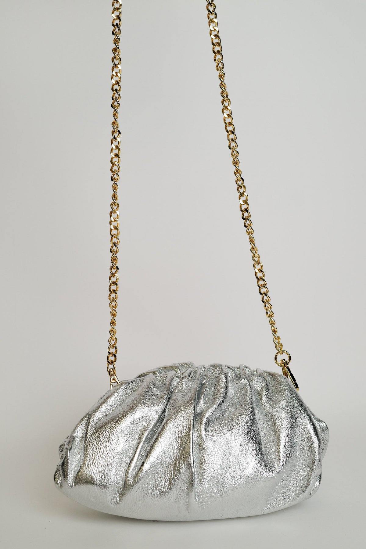 Small leather effect handbag. Golden finish. It has a removable chain. Click clasp closure. Horizontal shape