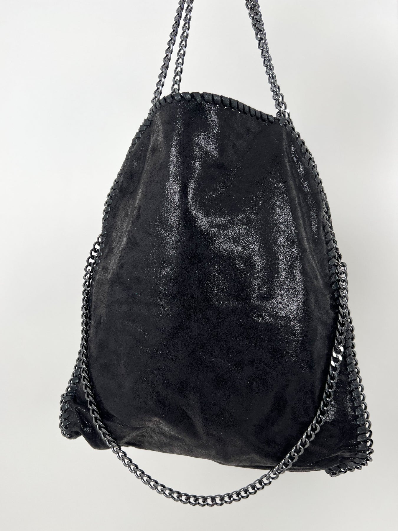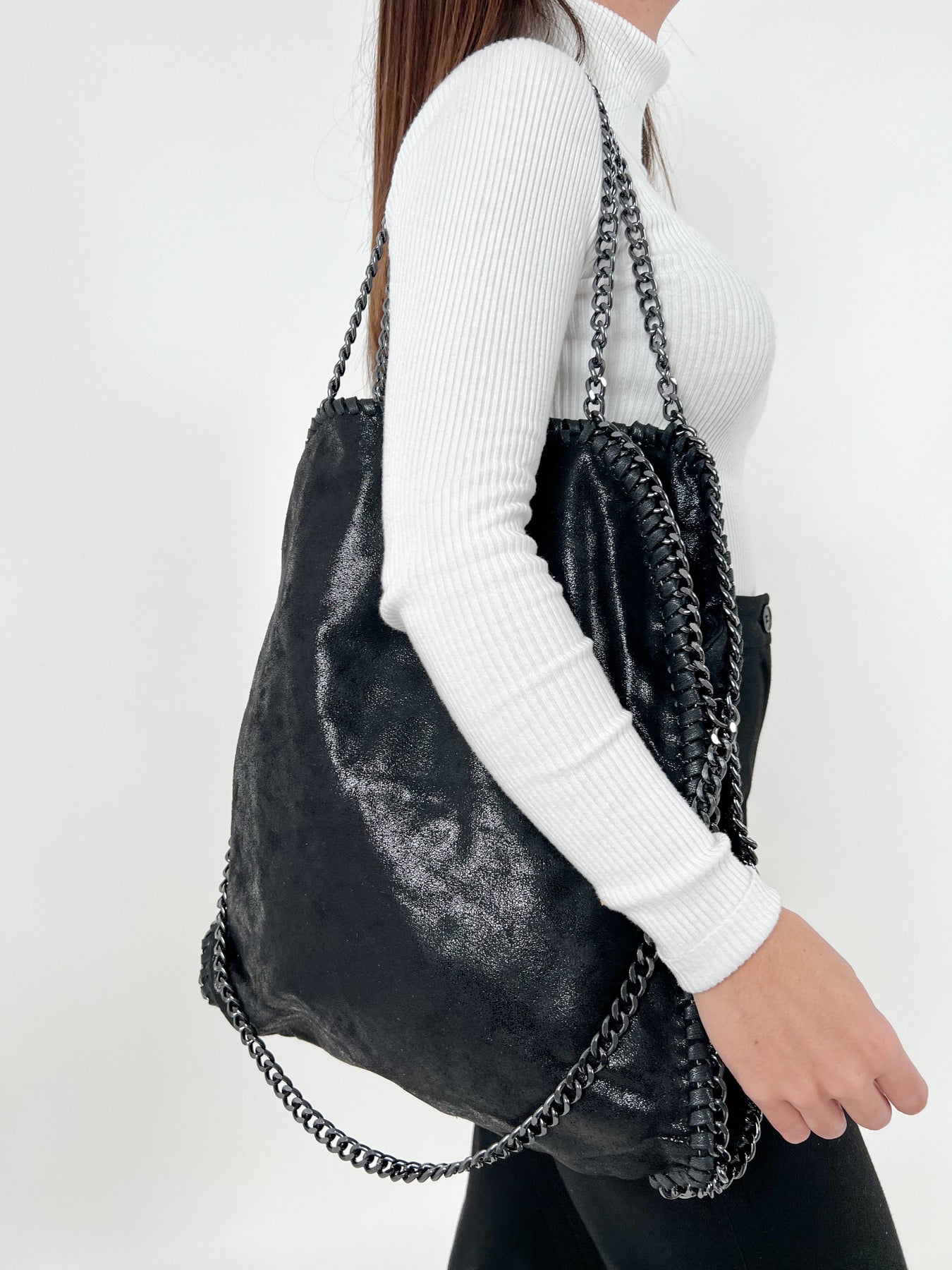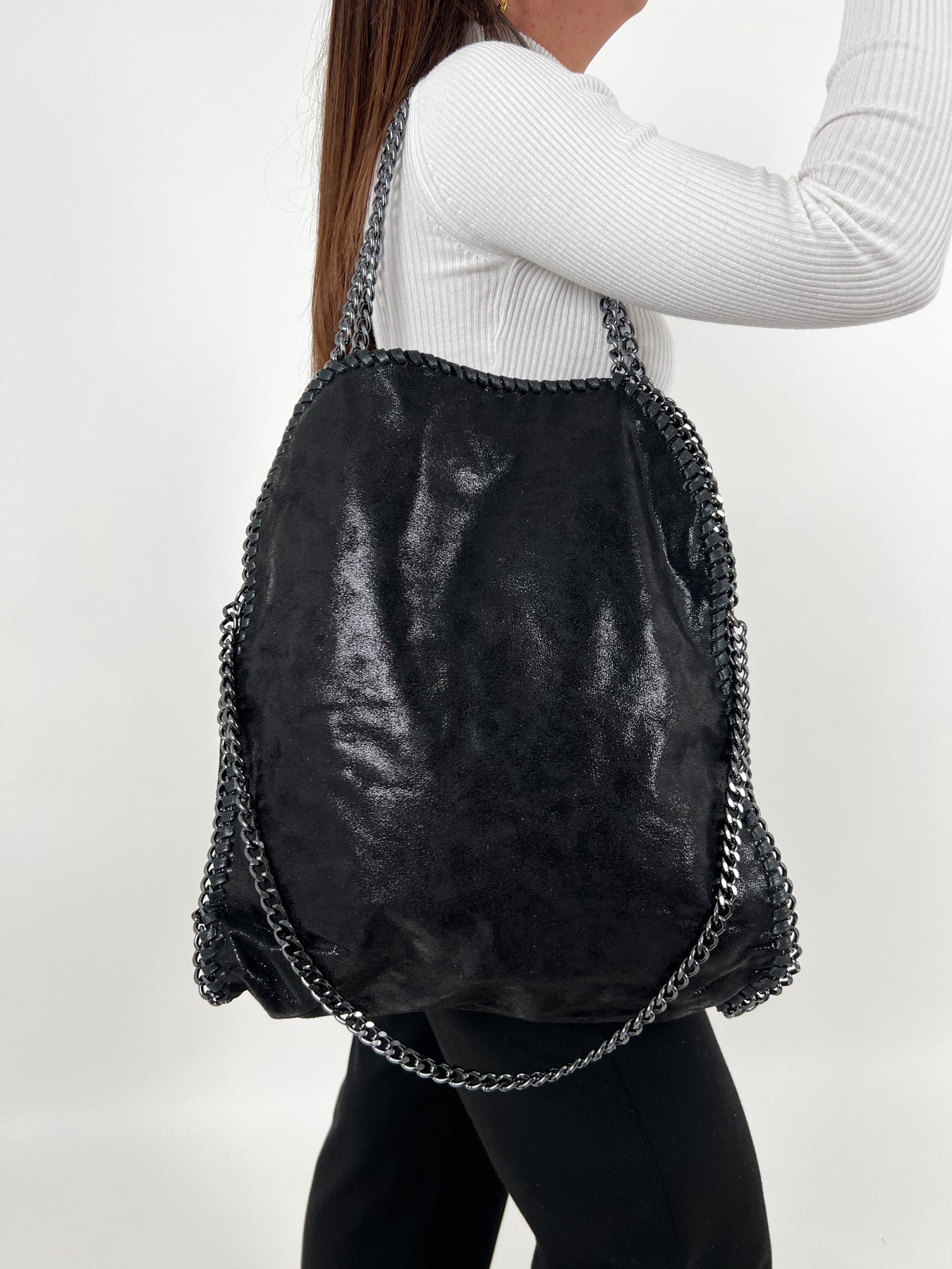 Patent leather bag type, with stitching detail black chains ideal size to put computer and books. Possibility of multiposition.