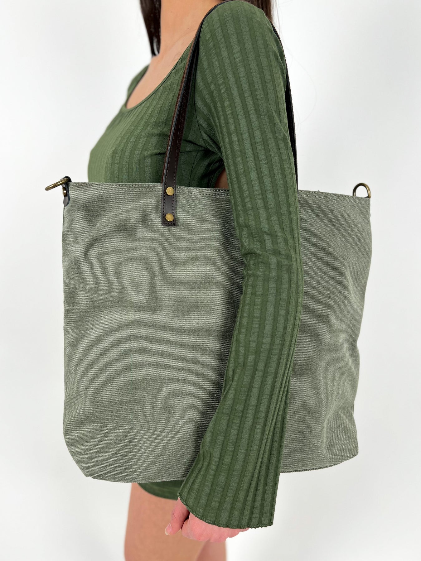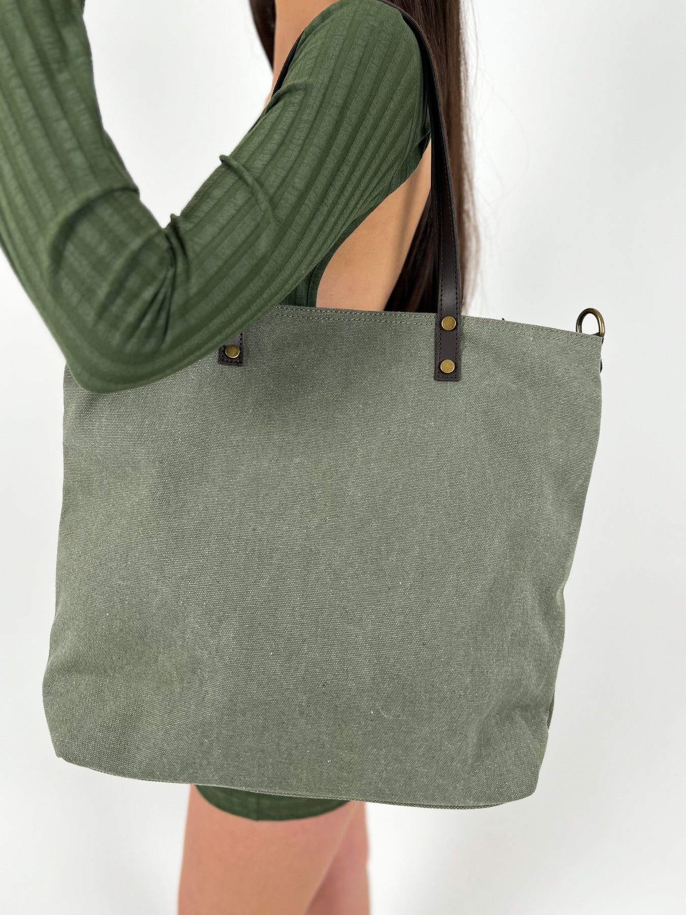 Khaki nylon maxi bag
