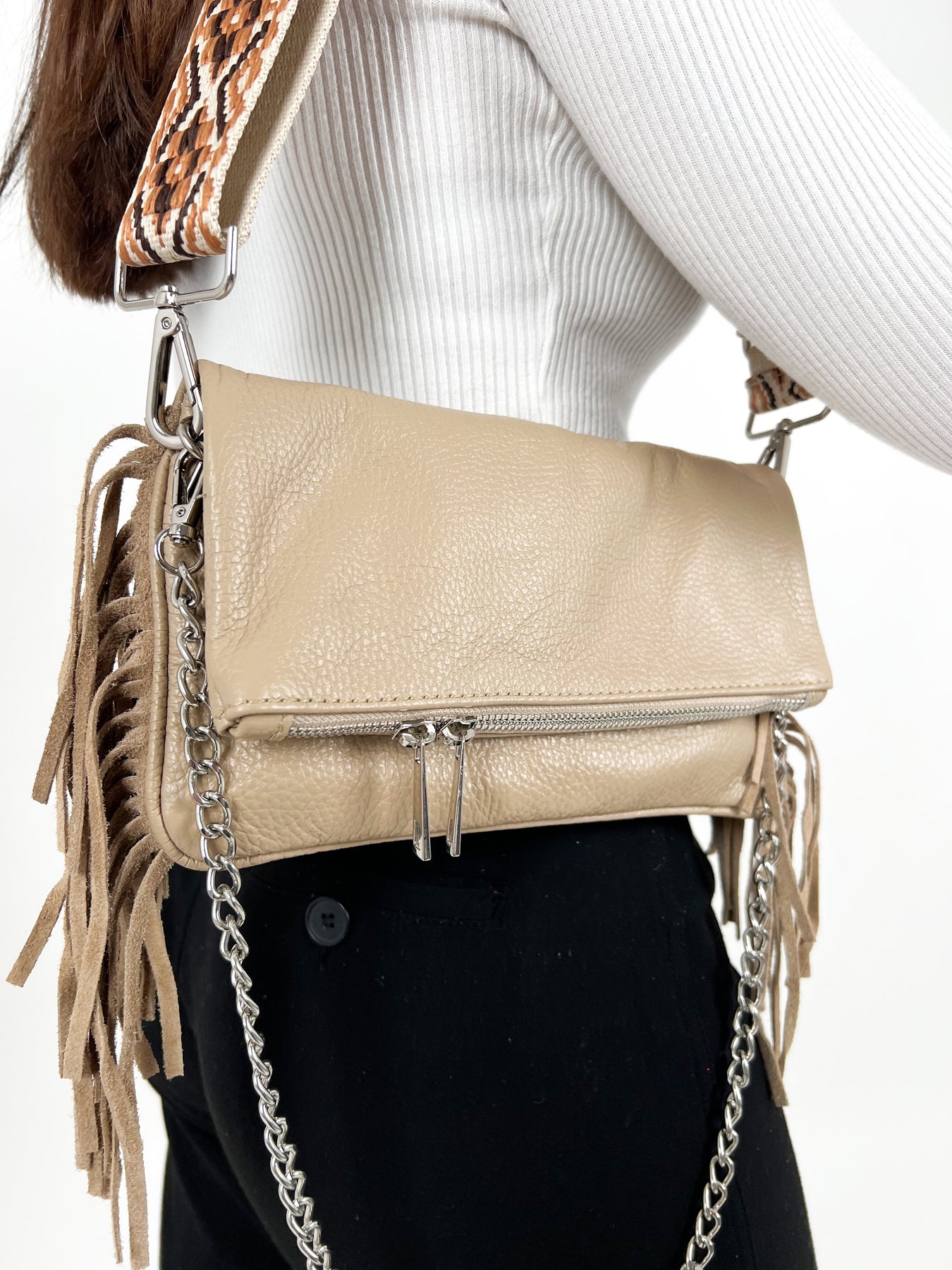 Brown fringed leather bag